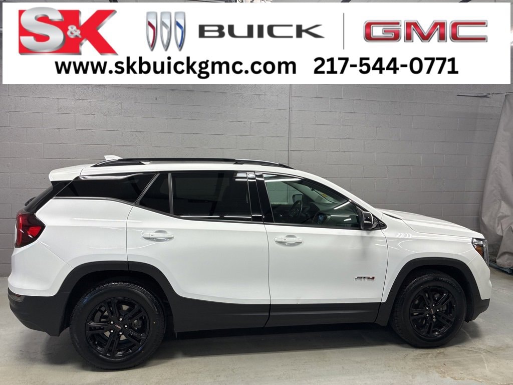 Clean CARFAX. CARFAX One-Owner. ***GM CERTIFIED - OVER $2600 IN BUILT IN VALUE***, ***SUNROOF / MOONROOF***, ***HEATED SEATS***, ***LEATHER***, AWD All wheel drive, ***THIS 1-OWNER TRADE-IN IS THE GMC TERRAIN AT4 SERIES WITH AWD. THE EXTERIOR IS SUMMIT WHITE MATCHED WITH A BLACK LEATHER INTERIOR THEN SET OFF BY IT'S 10 SPOKE GLOSS BLACK ALLOY SPORT WHEELS***, **FRONT & REAR PARK ASSIST W/ REAR CAMERA**, **HEADS-UP DISPLAY**, **REMOTE START**, **SURROUND VISION**, **TECH PACKAGE**, **FORWARD COLLISION & LANE ALERTS**, **REAR CROSS & BLIND ZONE ALERTS**, **DUAL POWER HEATED SEATS**, **HABDS FREE POWER TAILGATE**, **SURROUND VISION**, ** STEERING WHEEL CONTROLS**, **ADAPTIVE CRUISE CONTROL**, **HEATED STEERING WHEEL**, 3.47 Axle Ratio, 4-Wheel Disc Brakes, 6 Speakers, 6-Way Power Front Passenger Seat, 8-Way Power Driver Seat Adjuster, ABS brakes, Adaptive Cruise Control, Air Conditioning, AM/FM radio: SiriusXM, Auto High-beam Headlights, Automatic temperature control, Bluetooth For Phone, Compass, Delay-off headlights, Electronic Stability Control, Four wheel independent suspension, Front & Rear Park Assist, Front dual zone A/C, Front Passenger 2-Way Power Lumbar, Fully automatic headlights, Garage door transmitter, HD Surround Vision, Head-Up Display, Heated front seats, Heated steering wheel, Illuminated entry, Lane Change Alert w/Side Blind Zone Alert, Lane Departure Warning System, Low tire pressure warning, Outside temperature display, Panic alarm, Perforated Leather-Appointed Seat Trim w/AT4 Logo, Power Driver Lumbar Control, Power Liftgate, Rear Cross-Traffic Alert, Rear window defroster, Rear window wiper, Remote keyless entry, Safety Alert Seat, Security system, Side Blind Zone & Rear Cross Traffic, Skyscape Power Sunroof w/Power Sunscreen, Speed-sensing steering, Split folding rear seat, Tech Package, Telescoping steering wheel, Terrain Pro Safety Plus, Tilt steering wheel, Traction control, Variably intermittent wipers, Wheels: 17 x 7 Gloss Black Aluminum, Wireless Apple CarPlay/Wireless Android Auto. 24/28 City/Highway MPGLike every S&K Buick GMC quality pre-owned, this vehicle has been completely serviced and inspected BEFORE it is offered for sale. S&K quality pre-owned vehicles are meticulously detailed inside and out and ready to go. Call, click or call today on this great vehicle opportunity. S&K NOBODY TREATS YOU BETTER. Skbuickgmc.com.