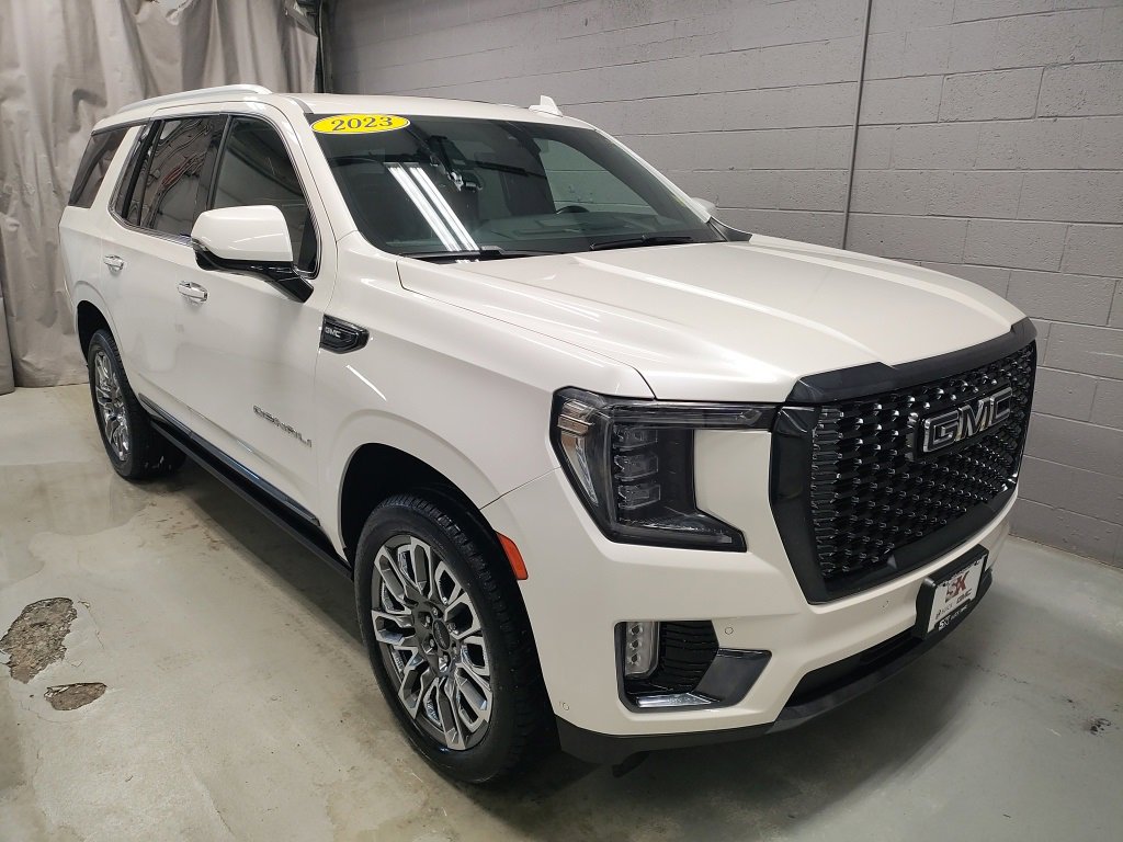 CARFAX One-Owner. ***GM CERTIFIED - OVER $2600 IN BUILT IN VALUE***, ***NAVIGATION***, ***SUNROOF / MOONROOF***, ***HEATED & COOLED SEATS***, ***LEATHER***, 4WD 4 wheel drive, ***TRAILER TOW PACKAGE***, ***THIS 1-OWNER TRADE-IN IS THE GMC YUKON DENALI ULTIMATE SERIES WITH 4WD. THE EXTERIOR IS WHITE FROST MATCHED WITH A RICH ALPINE UMBER (SADDLE) LEATHER INTERIOR THEN SET OFF BY IT'S 22 MULTI-SPOKE ALLOY SPORT WHEELS WITH GRAY ACCENTS***, **ENHANCED AUTO PARK ASSIST W/ REAR CAMERA**, **POWER SIDE ASSIST STEPS**, **HANDS FREE POWER TAILGATE**, **REMOTE START**, **HEADS-UP DISPLAY**, **SURROUND VISION**, **HEAD REST DVD ENTERTAINMENT**, **BOSE 18 SPEAKER SOUND SYSTEM**, **REMOTE START**, **SUPER CRUISE**, **DRIVER & FRONT PASSENGER MASSAGE SEATS**, **HEATED STEERING WHEEL**, **HEATED 2ND ROW SEATS**, 16-Way Power Seat Adjusters, 18 Speakers, 3.23 Rear Axle Ratio, 3rd row seats: split-bench, 4-Wheel Disc Brakes, ABS brakes, Adaptive Cruise Control, Advanced Security Package, Advanced Technology Package, Air Conditioning, AM/FM radio: SiriusXM with 360L, Apple CarPlay/Android Auto, Auto High-beam Headlights, Automatic temperature control, Bose Performance Series Sound System w/18 Speakers, Compass, Delay-off headlights, Dual-Pane Panoramic Power Sunroof, Electronic Limited Slip Differential (eLSD), Electronic Stability Control, Enhanced Automatic Parking Assist, Extra Capacity Cooling System, Four wheel independent suspension, Front dual zone A/C, Full Grain Leather Seats, Fully automatic headlights, Garage door transmitter, Hands-Free Power Programmable Rear Liftgate, HD Surround Vision, Headphones, Heads-Up Display, Heated & Ventilated Driver & Front Passenger Seats, Heated 2nd Row Outboard Position Seats, Heated steering wheel, Hitch Guidance w/Hitch View, Illuminated entry, Inside Rearview Auto-Dimming Rear Camera Mirror, Lane Departure Warning System, Low tire pressure warning, Max Trailering Package, Memory seat, Navigation System, Outside Heated Power-Adjustable Mirrors, Panic alarm, Power Liftgate, Power passenger seat, Power Release 2nd Row Bucket Seats, Power Tilt & Telescopic Steering Column, Power-Retractable Assist Steps, Rain sensing wipers, Rear air conditioning, Rear Camera Mirror Washer, Rear Cross Traffic Alert, Rear window wiper, Reverse Automatic Braking, Security system, Speed control, Speed-sensing steering, Split folding rear seat, Steering wheel memory, Steering wheel mounted audio controls, Super Cruise, Telescoping steering wheel, Theft-Deterrent Alarm System, Tilt steering wheel, Traction control, Turn signal indicator mirrors, Variably intermittent wipers, Wheels: 22 7-Spoke Ultra-Bright Machined.