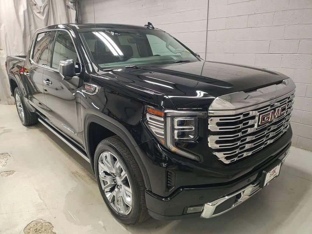 Clean CARFAX. CARFAX One-Owner. ***SUNROOF / MOONROOF***, ***HEATED & COOLED SEATS***, ***LEATHER***, 4WD 4 wheel drive, ***TRAILER TOW PACKAGE***, ***THIS 1-OWNER TRADE-IN IS THE GMC SIERRA 1500 DENALI SERIES WITH 4WD. THE EXTERIOR IS ONYX BLACK MATCHED WITH A BLACK LEATHER INTERIOR THEN SET OFF BY IT'S 12 SPOKE 22 ALLOY SPORT WHEELS WITH CHROME ACCENTS***, **FRONT & REAR PARK ASSIST**, **BOSE SOUND SYSTEM**, **SURROUND VISION**, **ADAPTIVE CRUISE CONTROL**, **HEATED STEERING WHEEL**, **REMOTE START**, **SPRAY-IN BEDLINER**, **DENALI RESERVE PACKAGE**, **TECHNOLOGY PACKAGE**, **HEADS-UP DISPLAY**, **FORWARD COLLISION, LANE & REAR CROSS ALERTS**, 12-Way Power Driver Seat Adjuster w/Lumbar, 12-Way Power Passenger Seat Adjuster w/Lumbar, 3.23 Rear Axle Ratio, 4-Wheel Disc Brakes, ABS brakes, Air Conditioning, AM/FM radio: SiriusXM with 360L, Apple CarPlay/Android Auto, Auto High-beam Headlights, Auto-Locking Rear Differential, Automatic temperature control, Bed View Camera, Compass, Deep-Tinted Glass, Delay-off headlights, Denali Reserve Package, Driver Memory, Electric Rear-Window Defogger, Electronic Stability Control, Forge Perforated Leather Seat Trim, Forward Collision Alert, Front Bucket Seats, Front dual zone A/C, Fully automatic headlights, Garage door transmitter, GMC MultiPro Power Steps, HD Surround Vision, Heated door mirrors, Heated Driver & Front Outboard Passenger Seating, Heated rear seats, Heated steering wheel, Hitch Guidance, Hitch View, Illuminated entry, In-Vehicle Trailering System App, Integrated Trailer Brake Controller, Lane Keep Assist w/Lane Departure Warning, Low tire pressure warning, Navigation System, Outside temperature display, Panic alarm, Perimeter Lighting, Power Door Locks, Power door mirrors, Power passenger seat, Power Sliding Rear Window w/Rear Defogger, Power Sunroof, Premium Bose 7-Speaker Sound System, Push Button Start, Rain sensing wipers, Rear Camera Mirror, Rear Cross Traffic Braking, Rear Wheelhouse Liners, Remote Vehicle Starter System, Security system, Speed control, Speed-sensing steering, Split folding rear seat, Spray-On Pickup Bedliner w/GMC Logo, Steering Wheel Audio Controls, Steering wheel mounted audio controls, Technology Package, Telescoping steering wheel, Tilt steering wheel, Traction control, Trailer Camera Provisions, Trailer Side Blind Zone Alert, Trailering Package, Ultrasonic Front & Rear Park Assist, Variably intermittent wipers, Ventilated Driver & Front Passenger Seats, Wheels: 22 x 9 Painted Aluminum.