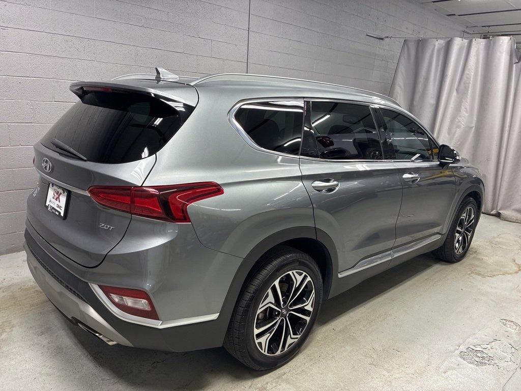 Clean CARFAX. CARFAX One-Owner. ***NAVIGATION***, ***SUNROOF / MOONROOF***, ***HEATED & COOLED SEATS***, ***LEATHER***, ***THIS 1-OWNER TRADE-IN IS THE HYUNDAI SANTA FE ULTIMATE SERIES WITH FRONT WHEEL DRIVE. THE EXTERIOR IS MACHINE GRAY METALLIC MATCHED WITH A BLACK LEATHER INTERIOR THEN SET OFF BY IT'S 5 BENT SPOKE 19 ALLOY SPORT WHEELS WITH BLACK ACCENTS***, **HANDS FREE POWER TAILGATE**, KEYLESS REMOTE ENTRY**, **STEERING WHEEL CONTROLS**, **HEATED STEERING WHEEL**, **HEATED 2ND ROW SEATS**, **HEADS-UP DISLAY**, **INFINITY SOUND SYSTEM**, **FORWARD COLLISION & LANE ALERTS**, **REAR CROSS & BLIND SPOT ALERTS**, **DUAL POWER, HEATED & COOLED SEATS W/ DRIVER MEMORY**, 12 Speakers, 4-Wheel Disc Brakes, ABS brakes, Air Conditioning, Apple CarPlay & Android Auto, Auto High-beam Headlights, Automatic temperature control, Compass, Delay-off headlights, Electronic Stability Control, Exterior Parking Camera Rear, Four wheel independent suspension, Front dual zone A/C, Fully automatic headlights, Heads-Up Display, Heated & Ventilated Front Bucket Seats, Heated door mirrors, Heated steering wheel, Illuminated entry, Leather Seating Surface, Low tire pressure warning, Memory seat, Navigation System, Outside temperature display, Panic alarm, Power door mirrors, Power driver seat, Power Liftgate, Power moonroof, Power passenger seat, Radio: Infinity Premium AM/FM/MP3 Display Audio, Rain sensing wipers, Rear Parking Sensors, Rear window defroster, Rear window wiper, Security system, Speed control, Speed-sensing steering, Split folding rear seat, Steering wheel mounted audio controls, Telescoping steering wheel, Tilt steering wheel, Traction control, Turn signal indicator mirrors, Variably intermittent wipers, Wheels: 19 x 7.5J Alloy.